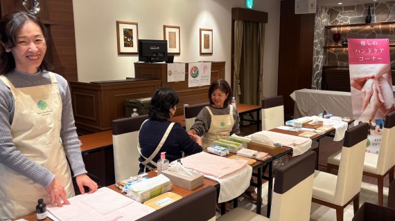 健診後、約100名の方がハンドケアを受けてくださり、多くの方が「心地よい」「癒された」との嬉しいお言葉もいただきました。