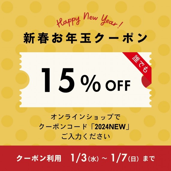 オンラインショップで使える 誰でも15%オフのクーポンを配布