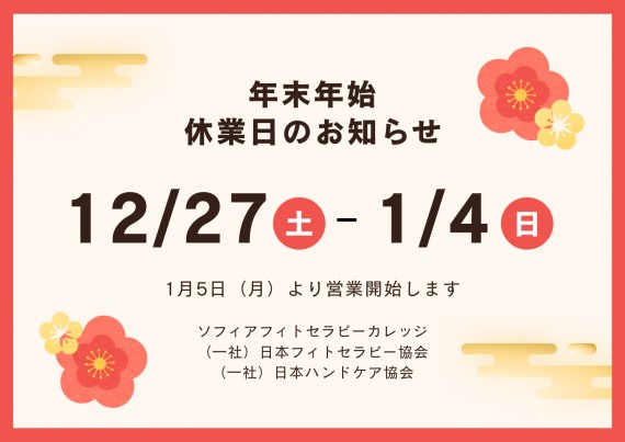 当事務局は、2025年12月27日(土)から2026年1月4日(日)を年末年始休業とさせていただきます。2026年1月5日(月)より通常営業いたします。